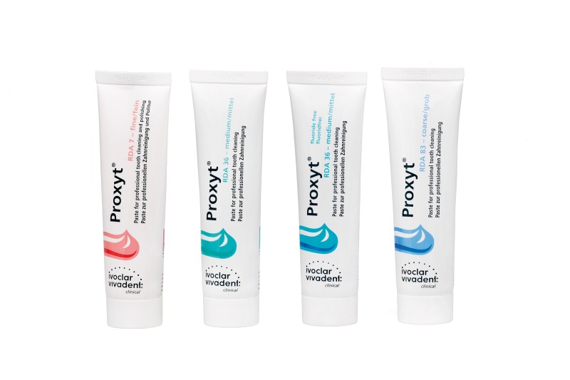 Proxyt® – Ivoclar са професионални пасти за почистване и полиране на зъби, реставрации и импланти. Осигуряват ефективно, но щадящо действие върху емайла и дентиновите тъкани.