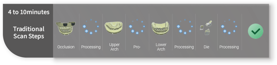 Благодарение на висококачествения модул и интелигентния софтуер, скенерът за стоматологична лаборатория може бързо да сканира широка гама от модели. Ефективността на сканиране е значително подобрена!